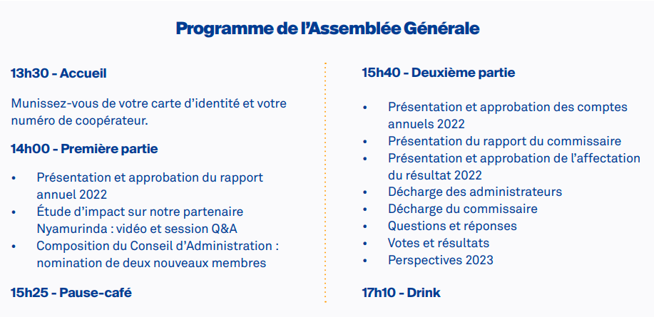Nous sommes heureux d'avoir accueilli nos coopérateurs à l'Assemblée Générale d'Alterfin SC le 22 avril 2023, au Comet Meetings Louise à Bruxelles.